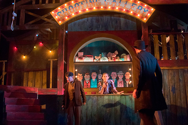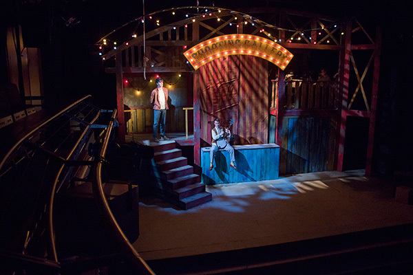 The scene in which Crompton's white golf ball lamps were used is based around a run-down Coney Island style fairground, with the lamps on the centre piece of the set highlighting the 'shooting gallery' designed by Judith Croft. The company's multi-coloured golf ball lamps were also used for the colourful festoon lighting all over the set. The design incorporated a large overhead string that was on constantly, chasing red, white and blue lamps, all controlled and dimmed by the theatre's main lighting console.